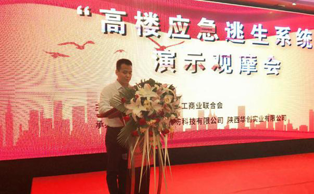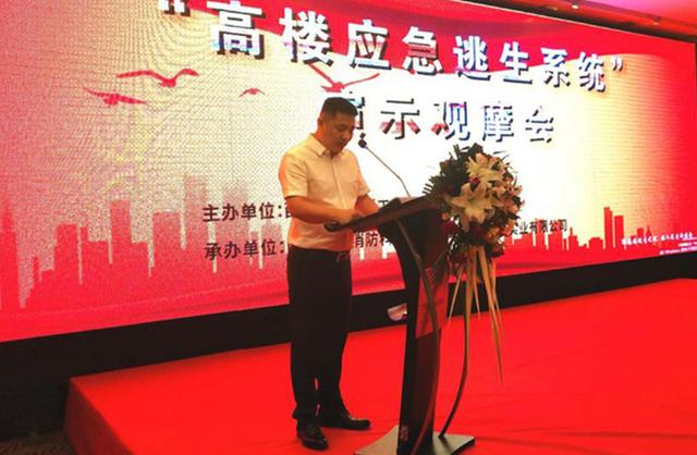 上海市消防協會秘書長黃鐵軍在會上介紹說:扶手懸掛逃生器是一款研發的先進逃生系統,該產品豐富了我國逃生產品的種類,在發生火災、地震等險情時,可以幫助人員快速安全逃生。