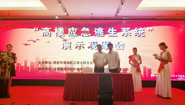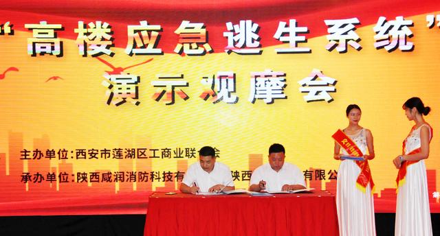 當天還在蓮湖區華府·西城港灣小區舉行了現場觀摩,該小區是由陜西華創實業有限公司開發建設,作為西安市首例在已建樓宇安裝“高樓應急逃生系統-扶手懸掛逃生器”的小區為解決高樓遇險后人員安全逃生難題提供了典型范例。