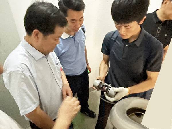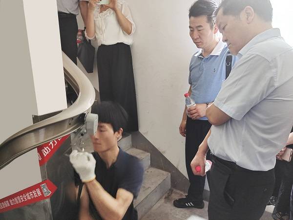 在觀摩項目投入使用社區時,專業技術人員對高樓應急自救裝置、高樓應急專用軌道、位置追蹤設備及智能APP管理平臺等物聯網應用平臺及相關硬件設備進行了細致講解。