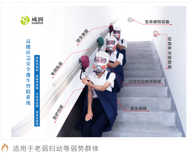該系統(tǒng)可有效解決高層建筑及各類人員密集場所內(nèi)涉險人員的群體性緊急疏散難題, 在傳統(tǒng)“防、消、救”的層面上,增加了“逃”的功能。當(dāng)發(fā)生火災(zāi)等緊急情況時,第一時間實(shí)現(xiàn)聯(lián)動報警,百米高層3分鐘快速逃生,高效有序撤離至地面安全地帶。同時結(jié)合物聯(lián)網(wǎng)+功能,對樓內(nèi)人員進(jìn)行生命探測、位置追蹤,為消防隊(duì)員提供精準(zhǔn)救援信息,將主動自救互救和協(xié)同組織救援緊密結(jié)合,有效提高救援全過程質(zhì)效,降低人員密集場所群死群傷重特大火災(zāi)事故的發(fā)生幾率,扭轉(zhuǎn)重特大事故多發(fā)被動局面,減少人員傷亡及財產(chǎn)損失,全方面保障人民生命財產(chǎn)安全,填補(bǔ)人員密集場所緊急疏散基礎(chǔ)設(shè)施建設(shè)空白。