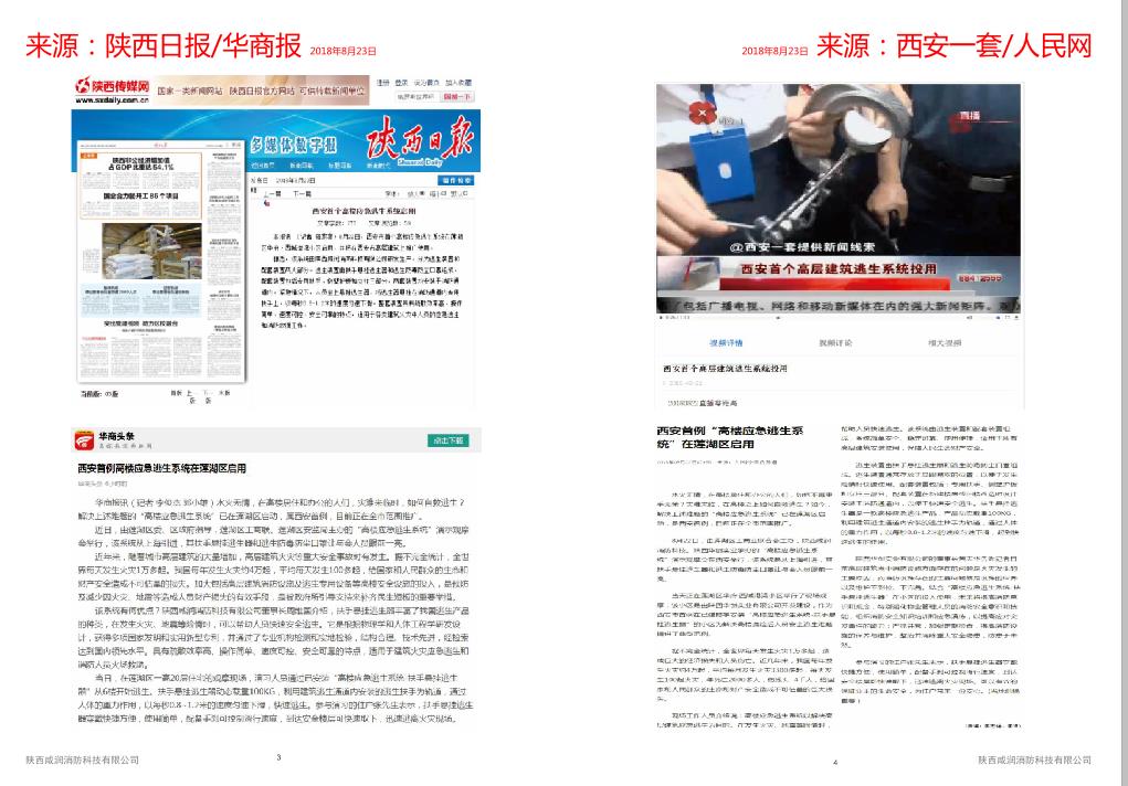 本次演示觀摩會約160人參加,其中包括20多家知名地產商,會議現場3家地產企業與我司簽訂了合作戰略協議。另外,在參觀位于西安市蓮湖區華府·西城港灣小區的“高樓應急逃生系統”樣板樓時,省市級消防有關領導等人強烈要求親自做現場滑行測試,滑行后給予“高樓應急逃生系統”高度評價。