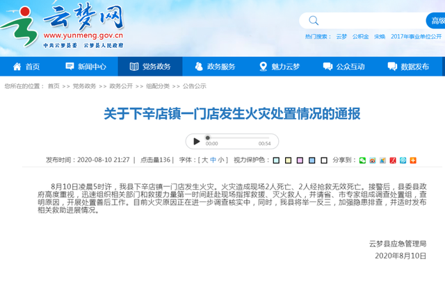 案例四:8月10日凌晨5時許,湖北云夢縣一門店發生火災。火災造成現場2人死亡、2人送醫經搶救無效死亡。