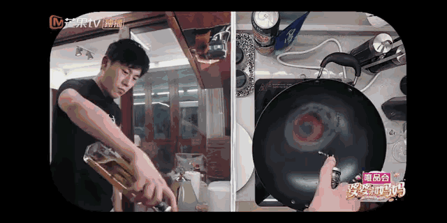 節目中,秦昊在倒油的時候