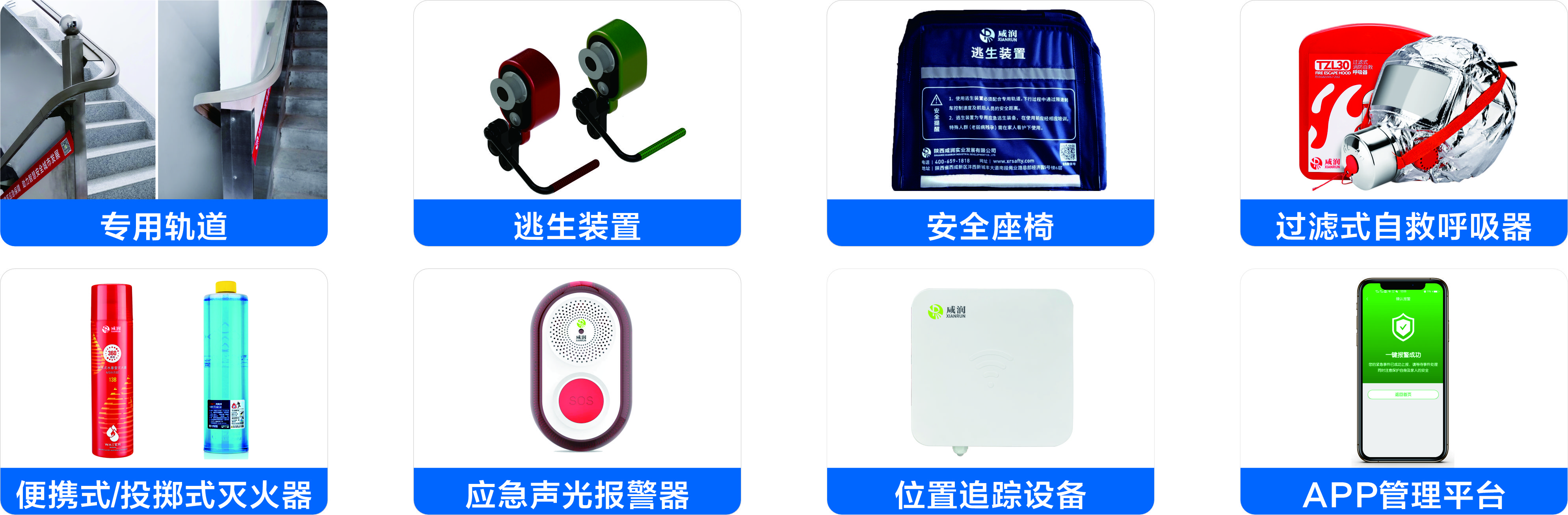 ·逃生設施的核心產品由專用軌道、逃生裝置、過濾式自救呼吸器組成。